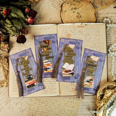 1pc Book And Text Pattern Bookmark, Metal Card Decorated Book Page Markers, Paper Reading Multi-Functional Bookmarks, Ideal For Students & Bookworms, Perfect For Enthusiast Readers Of All Ages, School Supplies, Office Supplies, Back To School - Multicolor - View 1