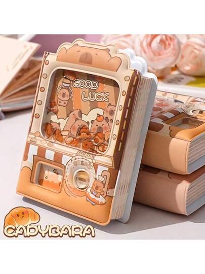1pc Capybara Gashapon Stress Relief Notebook, Cute Cartoon Mechanical Notebook, Capybara Toasted Bread Series Notebook, High-Quality Student Planner, Creative Shaking Rattle Bean Gashapon Notebook, Soft Leather Material Stress Relief, 9.7*7cm Notebook, Perfect Gift, Holiday Gift, Party Gift - Multicolor - View 1