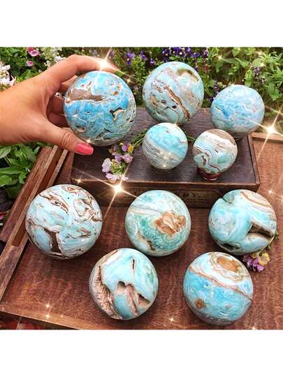 1pc Caribbean Septarian Geode - Bohemian Style Turquoise Blue & White Marble Pattern Home Decor, Christmas, Valentine's Day, Graduation Gift, Vintage Elegant Spiritual Ornament - Multicolor - View 10
