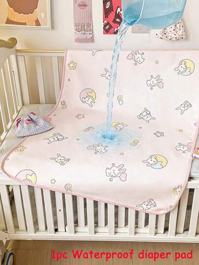 1pc Cartoon Animal Pattern Waterproof Urine Pad, Soft & Foldable Double-Sided Baby Mattress Protector, TPU Waterproof Layer, Suitable For Stroller, Cradle, Outdoor Use, Women's Menstrual Pad, Elder Care, Pet Pad, Student Dorm, Children's Room, Baby Crib - Multicolor - View 1