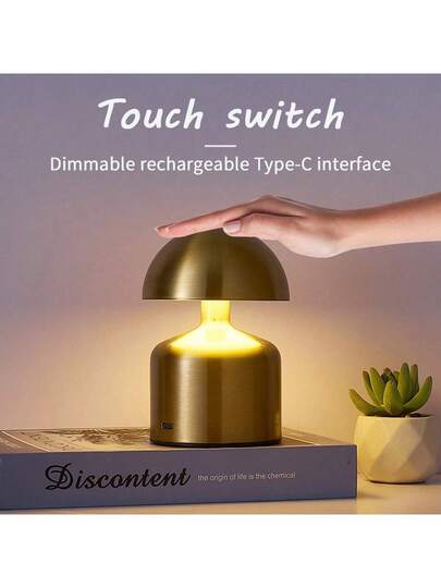 1pc Cordless Touch LED Desk Lamp, Modern Macaron Mushroom Lamp, 3-Color Dimmable Bedside Lamp, Rechargeable Night Light, Suitable For Bedroom, Living Room, Home Decor, And Gift - Cordless Desk Lamp - View 1