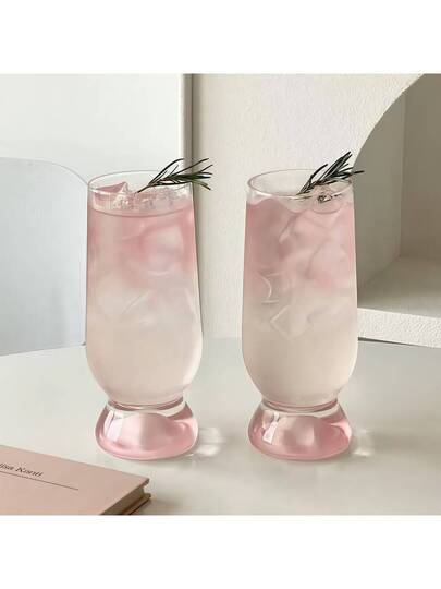 1pc Creative Designed Pink Base Transparent Glass Cup, Suitable For Home, Water Bar, Restaurant - For Drinks, Water, Coffee - Multicolor - View 1