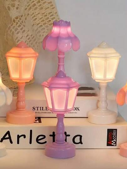 1pc Creative Mini Table Lamp Decoration, Lotus/Street Lamp Cute Night Light For Bedroom Atmosphere, LED Desk Cute Atmosphere Night Light, Desk Decor Birthday Gift - Multicolor - View 1