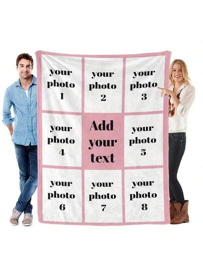 1pc Customized Photo Blanket With Text, Personalized High-Definition Digital Printed Flannel Quilt, Quilted Craftsmanship, Stain-Resistant, Machine Washable, Suitable For All Seasons, Versatile Use, Perfect Gift For Parents, Couples, Spouses, Also Ideal For Christmas Gifts And Christmas Decorations. Breathable, Lightweight, Washable, Fun, Cute, Heartwarming, Soft And Comfortable, Elegant And Simple, Customizable, Personalized, Unique, Ideal Gift For Him - Multicolor - View 1
