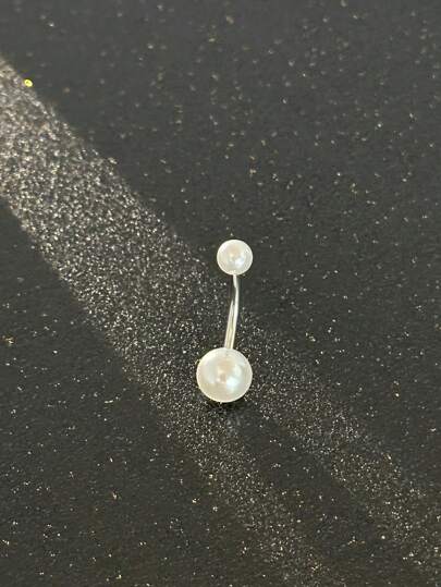 1 st dubbelsidig navelring med fuskpärla, elegant navelpiercing, navelpiercingsmycken i rostfritt stål, glittrande navelring, navelpiercingsmycken lämpliga för dagligt bruk av kvinnor - Silver - Visa 1