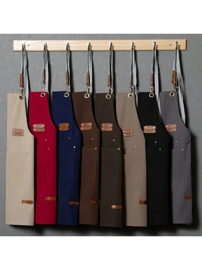 1pc Durable Water-Resistant Canvas Work Apron With Pockets And Adjustable Straps, Suitable For Nail Salons, Cafes, Restaurants, Bars, Bakeries And Staff - Multicolor - View 19