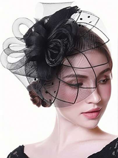 1pc Elegant Mini Hat, Kentucky Derby Style With Veil, Suitable For Ladies Tea Party, Bridal Wedding, Halloween, Church Events, Autumn, Top Hat, Rave Party, Halloween Accessory, Bride-To-Be, Mini Top Hat, Mini Hat, Gift