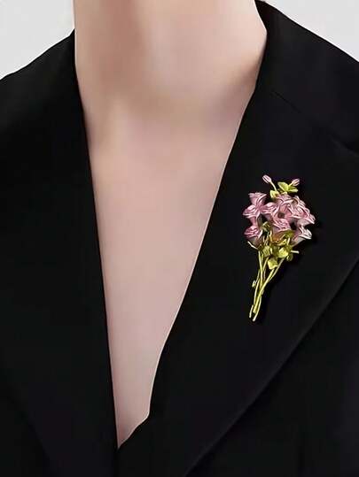 1pc Enamel Painted 3D Pink Rose Bouquet Brooch, Fresh Pastoral Style Elegant Accessory For Women - Multicolor - View 1