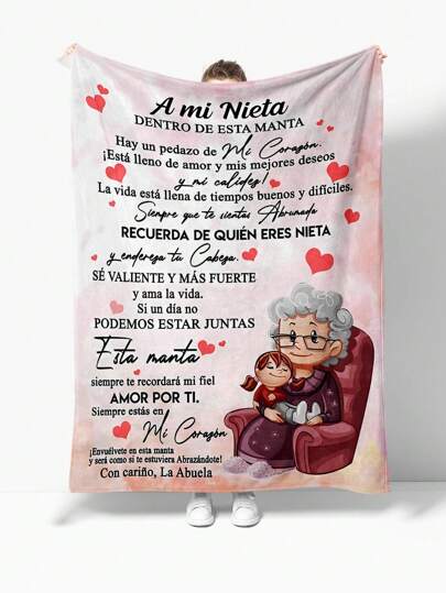 1pc Envelope Pattern Cartoon Style Flannel Blanket, Spanish, Ideal Home Textile For Picnic, Travel, Perfect Gift For Grandmother To Niece For Birthday, Festival - Multicolor - View 1