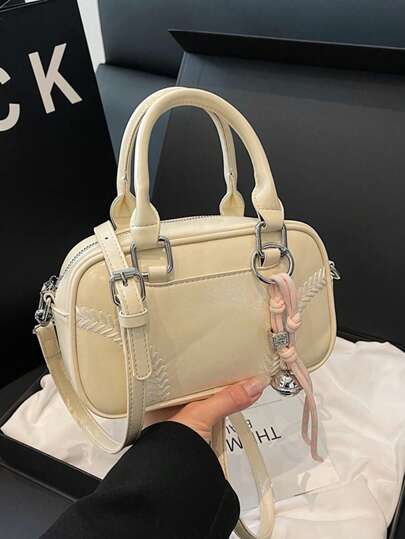 1 st Fashion PU Läder Crossbody Shoulder Bag, Minimalistisk & Stilfull Mini Bag Med Inkluderad Flätad Cord Charm - Beige - Visa 1