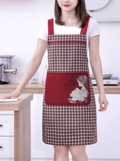 1pc Fashion Plaid Print Apron For Women With Large Pocket, Breathable Soft Durable Washable Cooking Apron For Home Use, Perfect Gift For Mom, Wife On New Year, Valentine's Day, Mother's Day