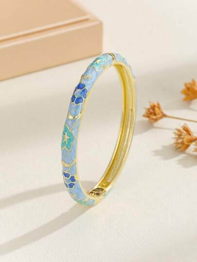 1pc Fashion Vintage Gold Plated Flower Star Pattern Enamel Cloisonne Bracelet Jewelry For Women Girls - Baby Blue - View 1