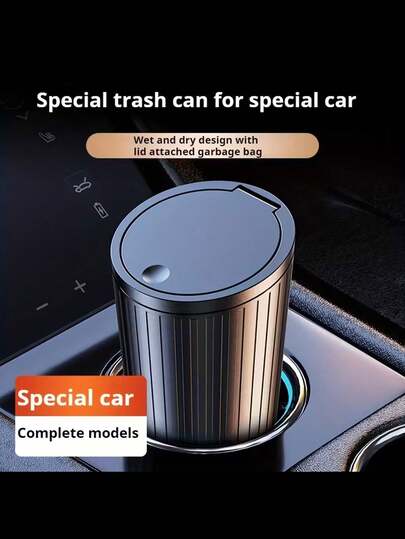 1pc Fashionable Black Car Trash Can With Lid - Waterproof, Durable ABS Material - Suitable For Center Console, Armrest Or Door Storage - Great For Vehicle And Home Use, Sturdy PP Lid Car Garbage Can - Mini Multifunctional Fit Cup Holder/Armrest Box Car Home Storage Cleaning Tool, Car Organizer