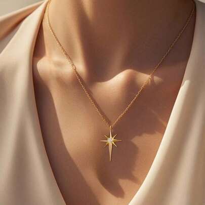 1pc Fashionable Elegant Minimalist Octagram Pendant Necklace - Star - View 1