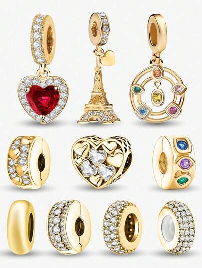1pc Fashionable Shiny Red Heart Shaped Beaded Pendant, Suitable For Women Bracelet, Bangle DIY Jewelry Making And Daily Accessories, Suitable For Girls Wear - Gold - View 21