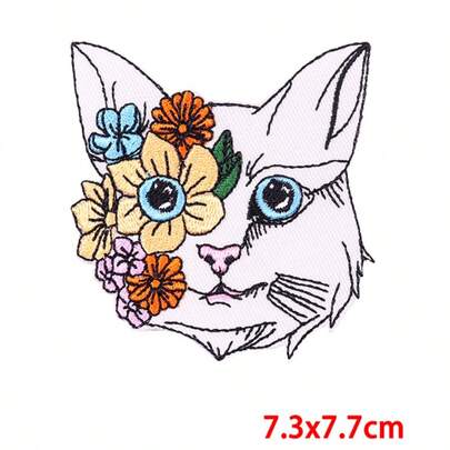 1pc Floral Cat Portrait Fashion Embroidered Patch, Iron-On Applique Suitable For DIY Jeans, Jackets, Clothing, Bags, Hats, Hole Repair And Decoration - DIY Animal Embroidery - View 5