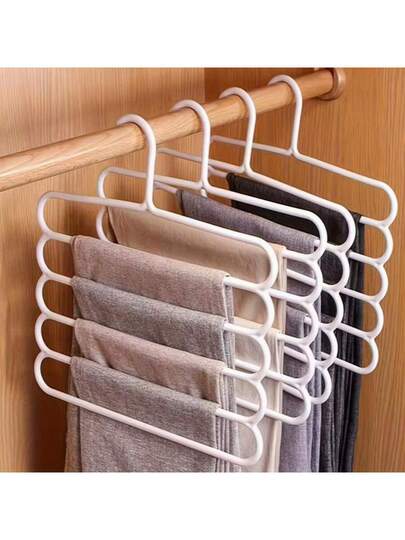 1pc Foldable Pants Hanger With 5-Tier Structure, Multifunctional Plastic Non-Slip Storage Hanger For Ties, Vests, Home Organization, With Anti-Slip Bar And 5 Crossbars - Black - View 1
