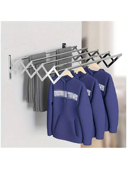 1pc Foldable Telescopic Towel Bar, Retractable Rod Wall Drying Rack, Stainless Steel Shower Towel Rack For Bathroom, Wall Mounted Towel Holder, Towel Clothes Hanger For Indoor Windows Balcony, Bathroom Accessories - 60cm - View 1