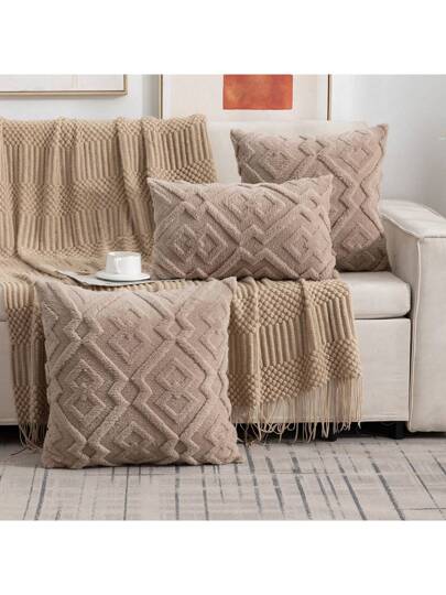 1 st. Geometrisk Plysch Kuddfodral Utan Kudde Kärna , Bohemisk stil För Vardagsrum Sovrum Hem Dekorationer Alla säsonger Kuddfodral - Kaki - Visa 1