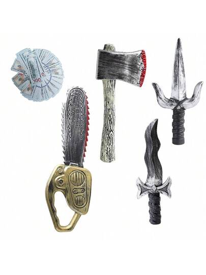 1pc Halloween Role Play Plastic Toy, Realistic Axe, Realistic Chainsaw, Realistic Dollar Bill Prop, Party Supplies. Note: Due To Handmade Production, There May Be Minor Scratches, Color Transfer, Dyeing, Fading, Or Color Difference On Different Parts, Which Are Normal. [Some Components Are Randomly Selected And May Have Color Variations] - Multicolor - View 1