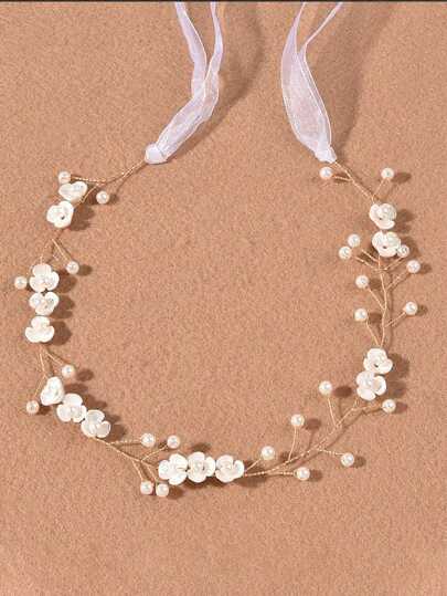 1pc Handmade Soft Pearl Tripetal Flower Headband, Hair Accessories, Headband For Updos, Hairpiece For Wedding Dress - White - View 1