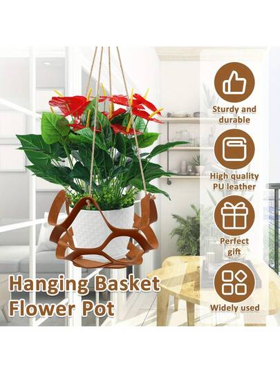 1 st hängande planteringskorg, konstläderdekor blomkruka för suckulenter och växter, inomhus utomhus balkong trädgårdsdekoration - Multifärgad - Visa 6