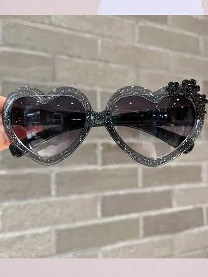 1pc Heart-Shaped Crystal Flower Decor Fashionable Glasses For Girls & Boys, Outdoor Wear - Multicolor - View 1
