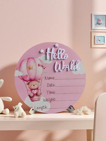 1 st födelsemeddelandetavla med "Hello World", träplakett med fotorekvisita för bebisen, träplakett med milstolpar för bebisen, doppresent (pojke/flicka) - Rosa - Visa 1
