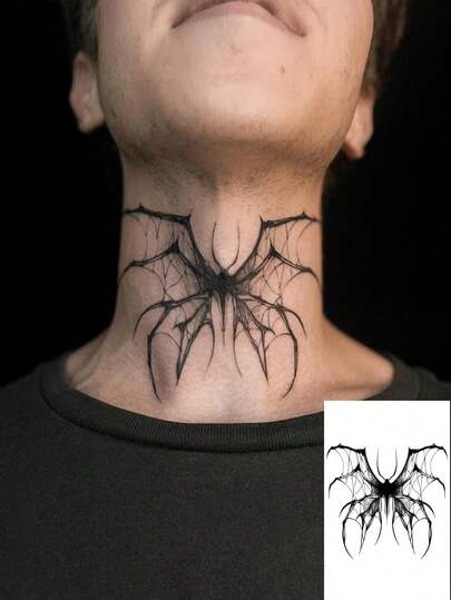 1 st örtmönstrad mörk stil mode hals spindelnät & fladdermus tillfällig tatuering, mörk estetik, indie linjekonst tatuering, håller i 1-2 veckor - Svart - Visa 6