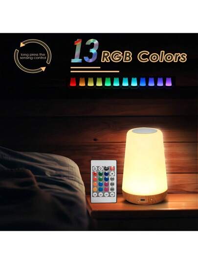 1pc LED Touch Sensor Night Light With Remote Control, Dimmable, Multi-Color Modes (5 Brightness Levels, 13 RGB Colors), Timer Function, Portable Bedside Lamp For Bedroom, Living Room, Camping, Lava Lamp Design, USB Rechargeable - Multicolor - View 1