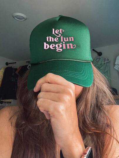 1pc Let The Fun Begin Embroidered String Baseball Mesh Cap, Trucker Hat, Outdoor Light Breathable Adjustable Sun Protection Cap, Suitable For Spring, Autumn, Travel, Hiking, Cycling - Baseball Mesh Cap - View 1