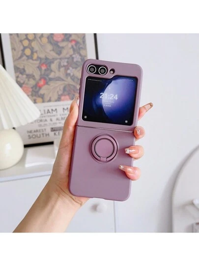 1 st. lyxigt heltäckande silikonskal med flytande material, inbyggt reptåligt flockfoder, med integrerat fingerringsstöd, kompatibelt med Samsung Z Flip 6/5/4/3 vattentätt stötsäkert fallskydd - Blåröd - Visa 5