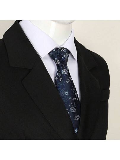1pc Men 3.15 Inch Navy Blue Floral Necktie, Fashion Tie For Wedding, Party, High Quality High Density Men Necktie - Navy Blue - View 5