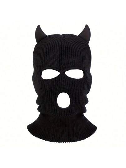 1 st stickad herrmössa med horn och tre hål, balaklava, lämplig för utomhusaktiviteter på vår och höst, vindtät och varm halloweenmössa för hösten - Svart - Visa 1