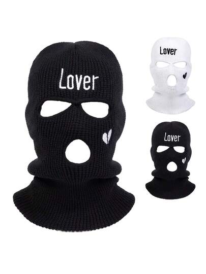 1pc Men's LOVER Letter & Heart Embroidery Knit Beanie Hat, 3-Hole Balaclava, Outdoor Casual Hat Suitable For Autumn/Winter Travel, Windproof And Warm - Multicolor - View 1