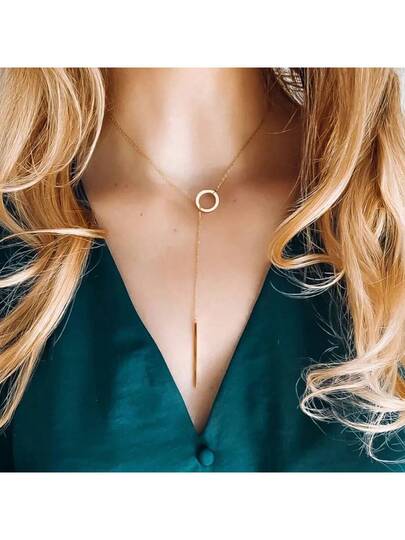 1pc Minimalist Fashion Metal Circle Pendant Necklace - Gold - View 1