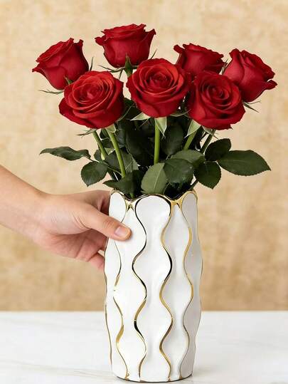 1pc Minimalist White Vase With Gold Trim, Resin Creative Decorative Vase, Suitable For Home Decor, Living Room, Dining Table, Bedroom