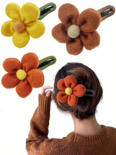 1pc New Luxury Fluffy Flower Hair Clip, Bun Maker Scrunchie Hair Accessory For Women - Multicolor - View 3