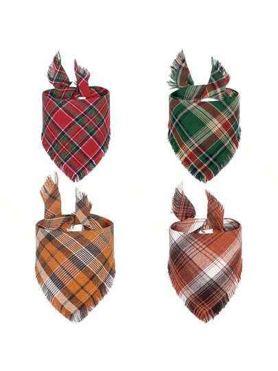 1pc New Plaid Pet Scarf With Tassel, Pet Bib Drool Bandana - Multicolor - View 1