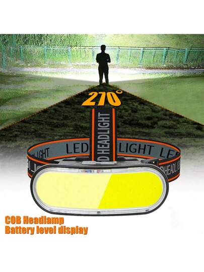 1 st utomhusstrålkastare med hög ljusstyrka camping bärbar uppladdningsbar multilägesstrålkastare långräckvidd nödhandtagslampa med strömdisplay för nattfiske, arbete, jakt, löpning, campingtillbehör - Svart - Visa 1
