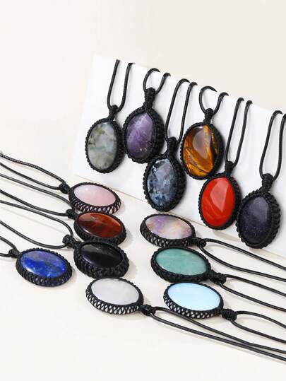 1pc Oval Natural Stone Pendant Crystal Necklace  Rope Wrapped Natural Stone Quartz Pendant Necklaces For Women Men Braided Spirituality Jewelry - Necklace - View 24