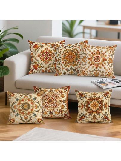 1pc Peach Velvet Decorative Pillow Cover, Vintage Floral & Geometric Pattern Single-Sided Print, Without Pillow Insert, Suitable For Living Room, Bedroom, Home Decor, All Season - Multicolor - View 10