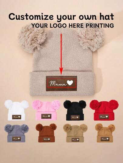 1pc Personalized Leather Tag Knit Beanie Hat With Any Text Printing, Super Cool For Your Child, Suitable For Autumn And Winterback To School Winter Gift Ideas Boy Girl Valentine's Day - Multicolor - View 25