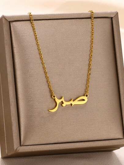 1pc Personalized Patience Arabic Letter Pendant Necklace, Unisex, 18K Gold Plated Stainless Steel Adjustable Chain, Islamic Gift, Fashion Jewelry Accessory - N05200 - View 1