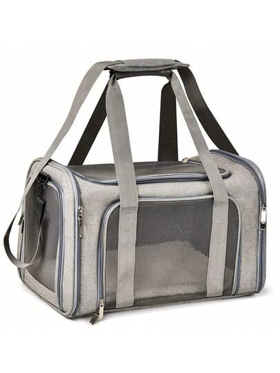 1pc Portable Pet Carrier - Lightweight Foldable Travel Bag With Breathable Mesh, Removable Pad, And Sturdy Handle/Strap, Zippered Closure For Outdoor Activities, High-Quality Mesh, Dog Harness - Grey - View 1