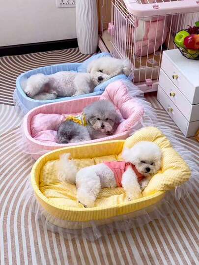 1pc Princess Pet Bed With Bow, Lace Bow Cat Bed, Cute Princess Cat Sofa Bed, Dog & Cat Cushion