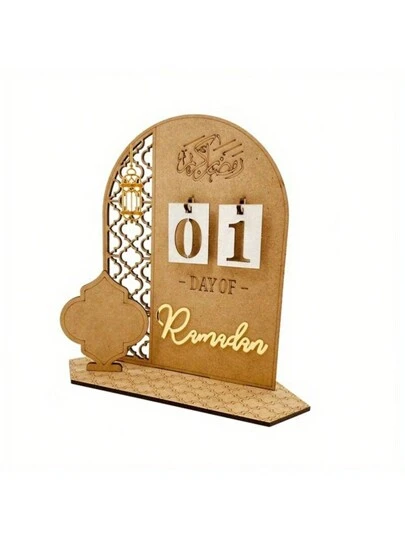 1 st, Ramadan-dekorationskalender, 3D-träadventskalender för Ramadan, inomhusinredning, rumsscendekor, skrivbordstillbehör, Al Adha EID muslimsk dekor, Ramadan-dekorationer för hemmet, islamiska Ramadan Mubarak-tema festtillbehör - lykta - Visa 1