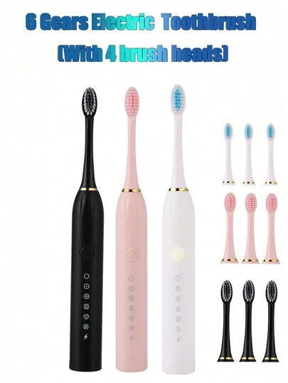 1 st. Laddningsbart Elektrisk Tandborste Med 6 Verktyg Och 4 Borsthuvuden - Svart - Visa 1