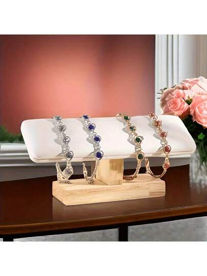 1pc Rectangular Desktop Makeup Display Tray, Available In Black/White - Multifunctional, Electricity-Free, Sturdy Wooden Display Stand, Suitable For Watches, Bracelets, Retail And Exhibition Storage Trays - Multicolor - View 1