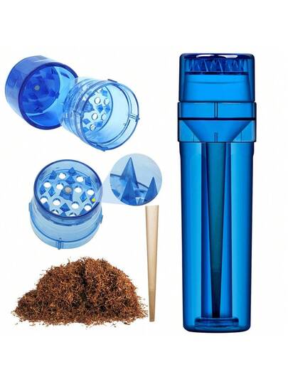 1pc Red And Blue Random Color Plastic Tobacco Herb Grinder With Pre-Rolled Cone Filler - Multicolor - View 1